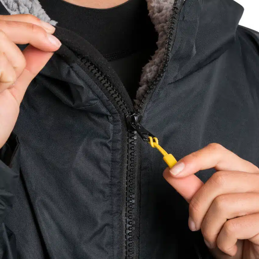 The robe is waterproof, windproof and warm, making it ideal for all elements, ranging from the wind to rain to snow. It features a polyester outer and a Sherpa fleece inner lining for cosiness. In terms of fastenings, it has a double zip enclosure and velcro cuffs, meaning wind and rain can’t get in at any point.