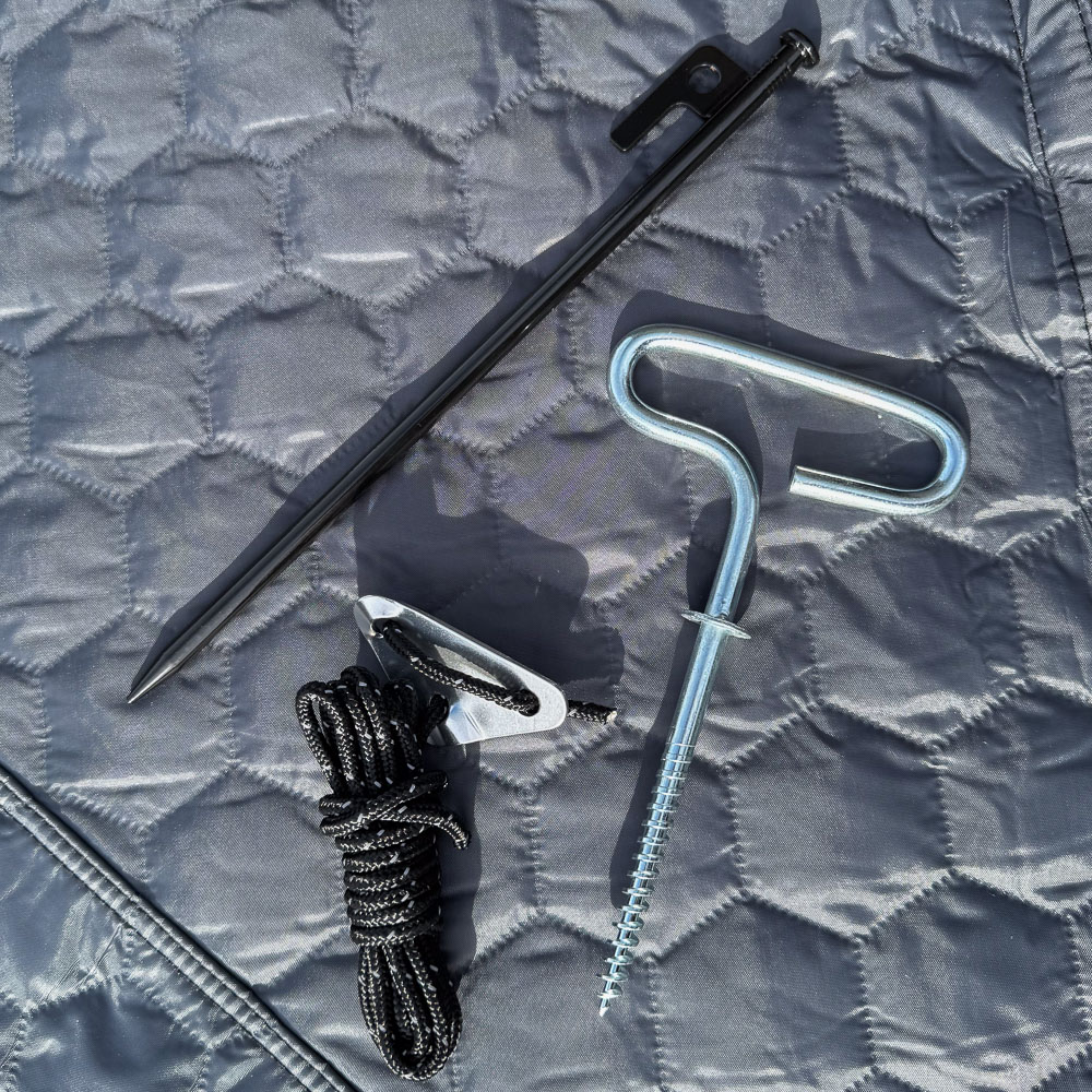 Setup is simple, taking just 5 minutes with no tools required. Reinforced guy ropes, ground anchors, and extra peg holes ensure it stays stable on various surfaces. Want to set it up on a patio? No problemโuse logs, rocks, or other weights to secure it in place.