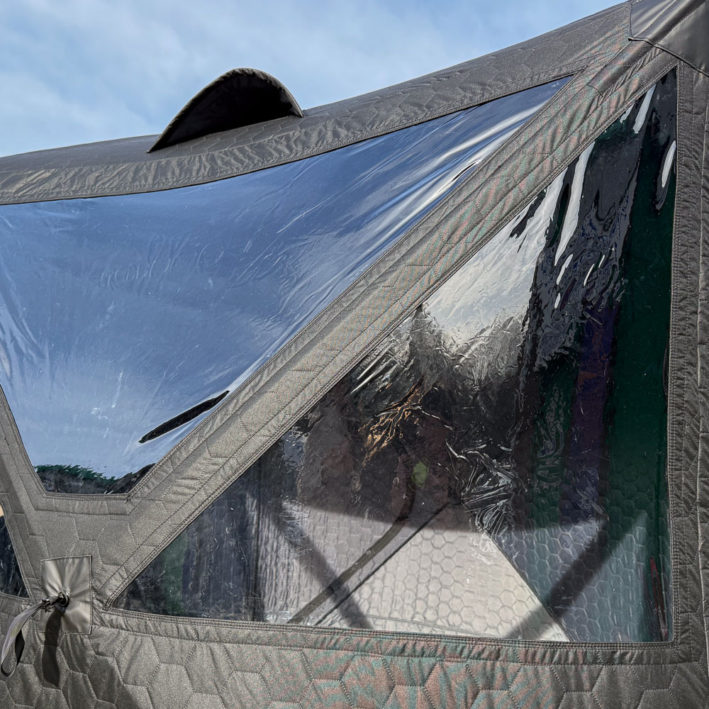 Materials: Heavy-duty 210D Oxford fabric, flame-resistant panels, panoramic PVC windows