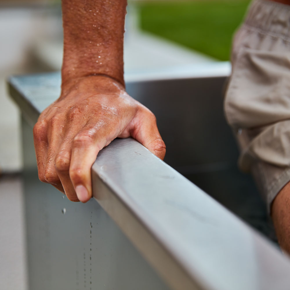This bath is designed for both residential and commercial use, making it ideal for personal recovery routines, PT studios, performance facilities, or wellness retreats. It features an integrated skimmer and filter system for improved water quality and hygiene. For commercial users, this helps meet PWTAG standards, while residential users will appreciate the low-maintenance upkeep.