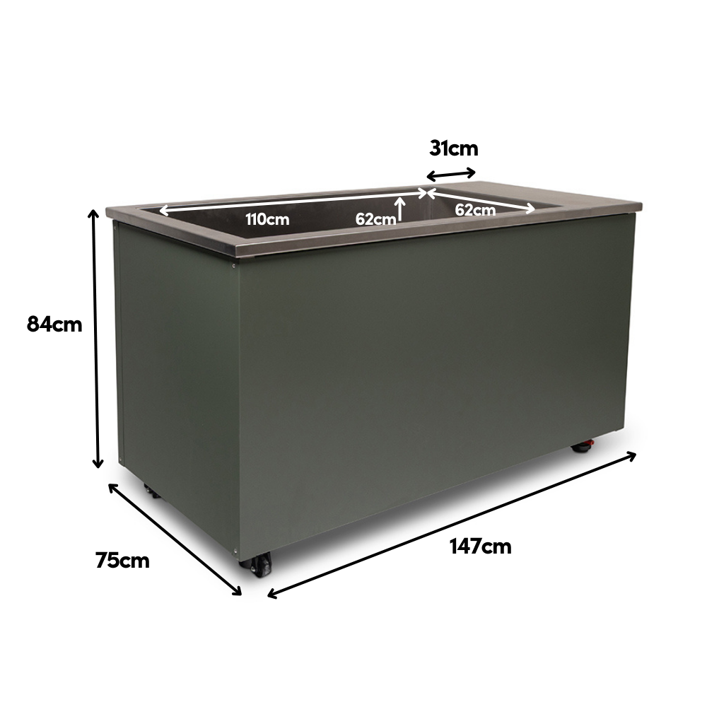 Internal Dimensions: 110cm (L) x 62cm (H) x 62cm (W)