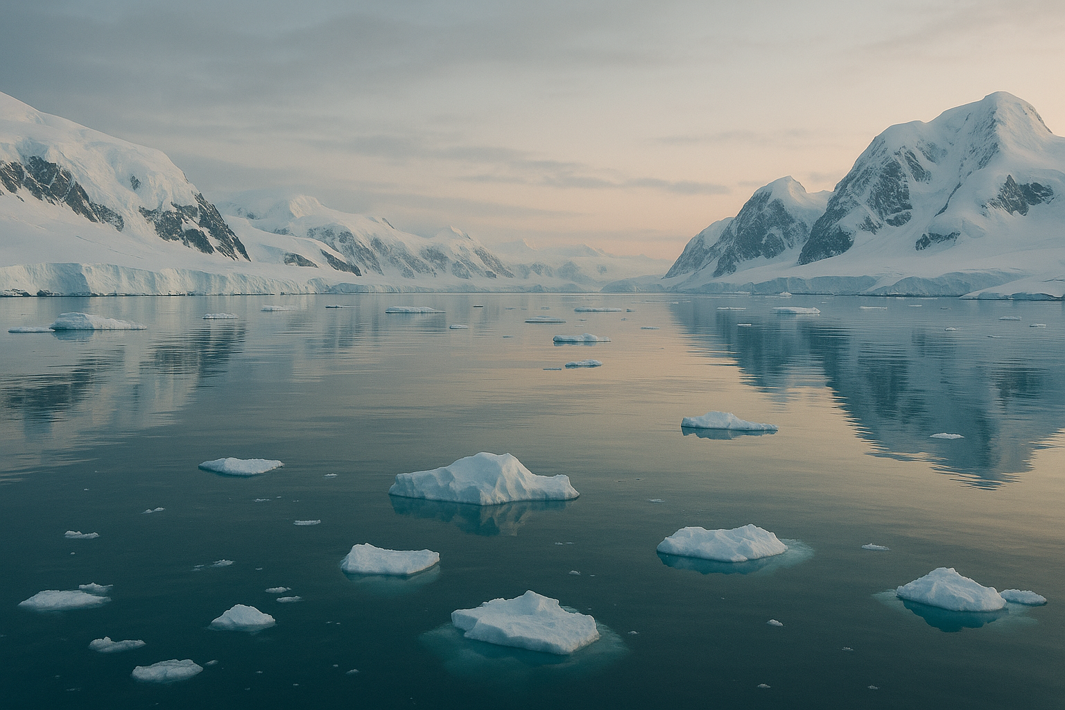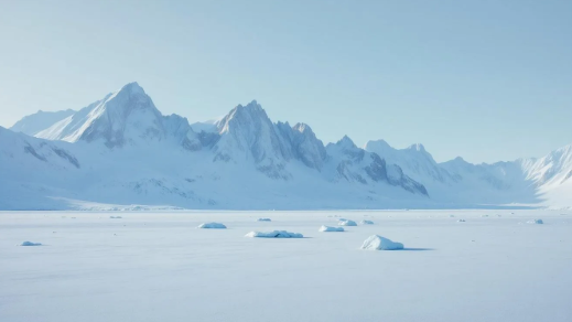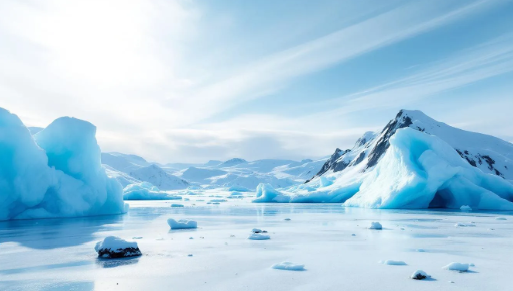An atmospheric image of Antarctica, the coldest place on earth, showcases a breathtaking landscape of vast ice sheets under a clear blue sky. The serene scene highlights the extreme cold and record low temperatures characteristic of the east Antarctic plateau, emphasizing the beauty and isolation of this remarkable region.